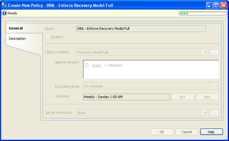 Let's use the Declarative Management Framework to enforce a recovery model full