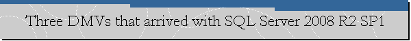 Three DMVs that arrived with SQL Server 2008 R2 SP1.